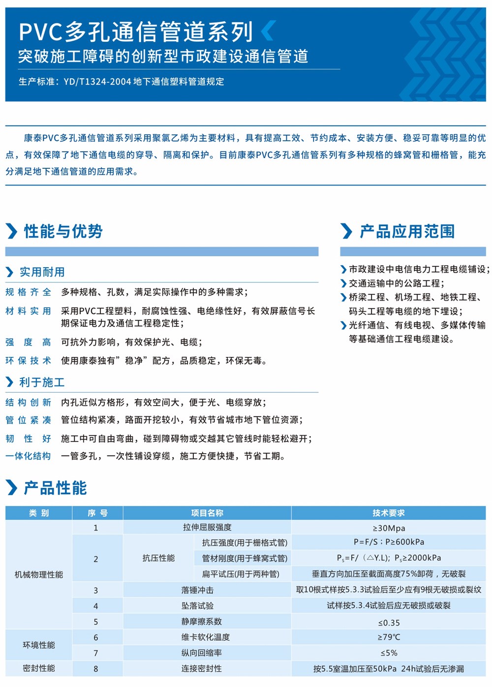 PVC¶à¿×ͨѶ¹ÜµÀÓÃPVC¶à¿×¹ÜÖÆ×÷ÖÊÁϽÓÄɾÛÂÈÒÒϩΪÖ÷£¬£¬£¬£¬È¡´ú¹Å°åµÄË®Äà¹Ü¿é£¬£¬£¬£¬¸Ö¹ÜÌ׹ܵȱ£»£»£»£»£»¤Ì×£¬£¬£¬£¬ÓÃÓÚ¶ÔµØÏÂͨѶµçÀµĴ©µ¼¡¢¸ôÀëºÍ±£»£»£»£»£»¤£¬£¬£¬£¬¾ßÓÐÌá¸ß¹¤Ð§¡¢½ÚÔ¼±¾Ç®¡¢×°ÖÃÀû±ã¡¢ÎÈÍ׿ɿ¿µÈÏÔ×ŵÄÓŵ㣬£¬£¬£¬Öð²½ÔÚµØÏÂͨѶ¹ÜµÀÖлñµÃÆÕ±éÓ¦Óᣡ£¡£¡£¡£¡£