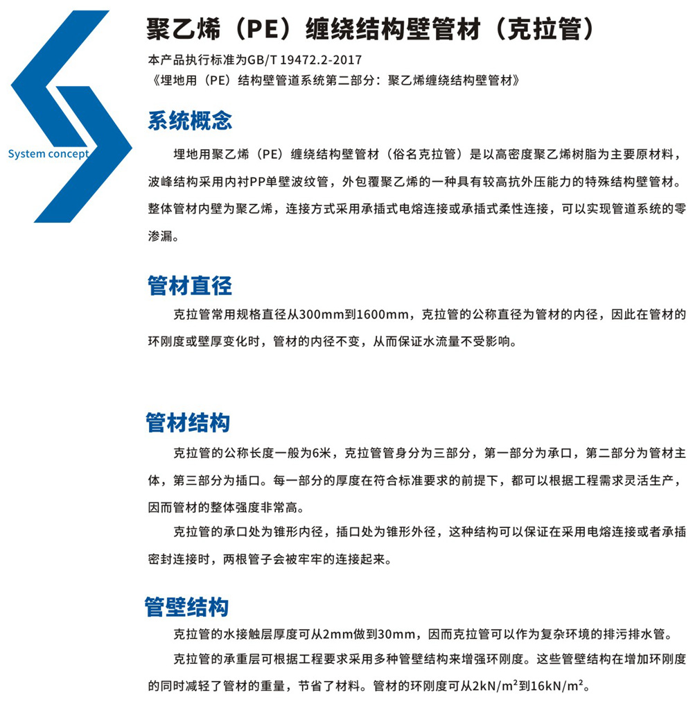 聚乙烯(PE)纠葛结构壁管(克拉管):